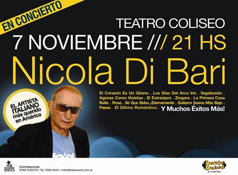 A 40 AÑOS DE SAN REMO Pocos artistas en el mundo son tan reconocidos, queridos y seguidos como NICOLA DI BARI. A lo largo de su extensa carrera, ha cosechado numerosos éxitos, sus canciones, forman parte en letras de oro de la Historia de la música italiana de todos los tiempos.